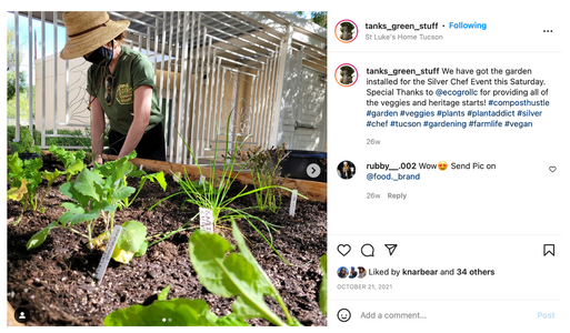 TANK’S was excited to be part of St. Luke's Silver Chef Challenge. In support of the event, TANK'S and EcoGrow added a new heritage garden and two new vegetable raised garden beds. The St. Luke's annual event is a great cause supporting a community that is always giving back to local seniors. TANK’S participated by building and planting a raised bed community garden for St. Luke’s residents. TANK’S team planned, built, and installed garden beds. Then, together with EcoGrow, TANK’S planted the garden so the senior residents of St. Luke’s could enjoy an ongoing gardening and produce fresh fruits and vegetables for the community.